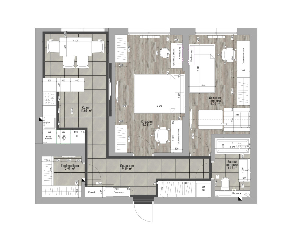Дизайн-проект 3-комнатной квартиры в ЖК "Уфимский Кремль"