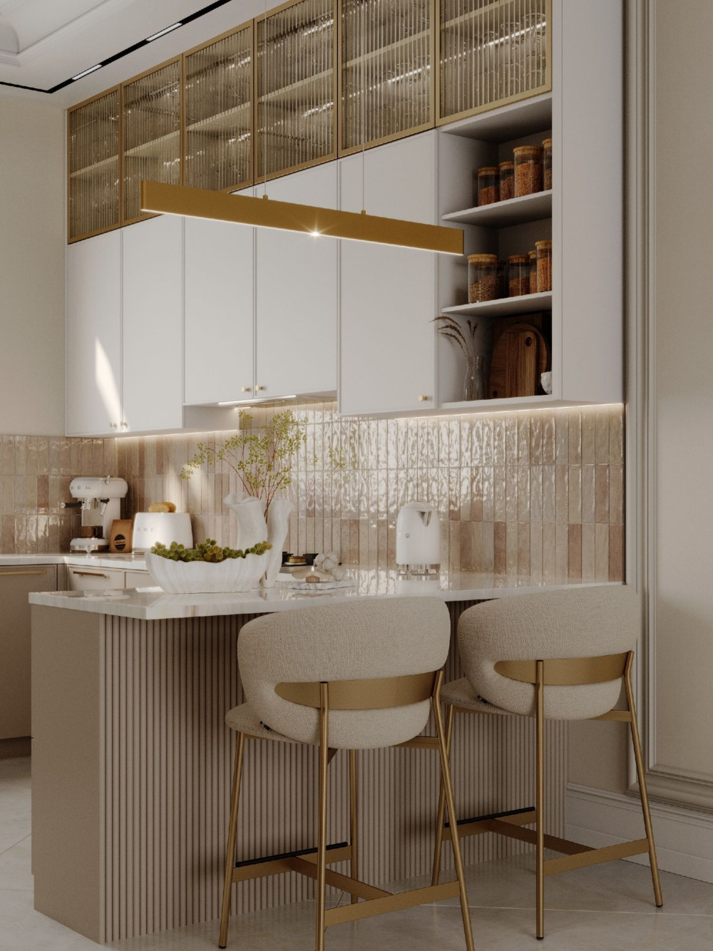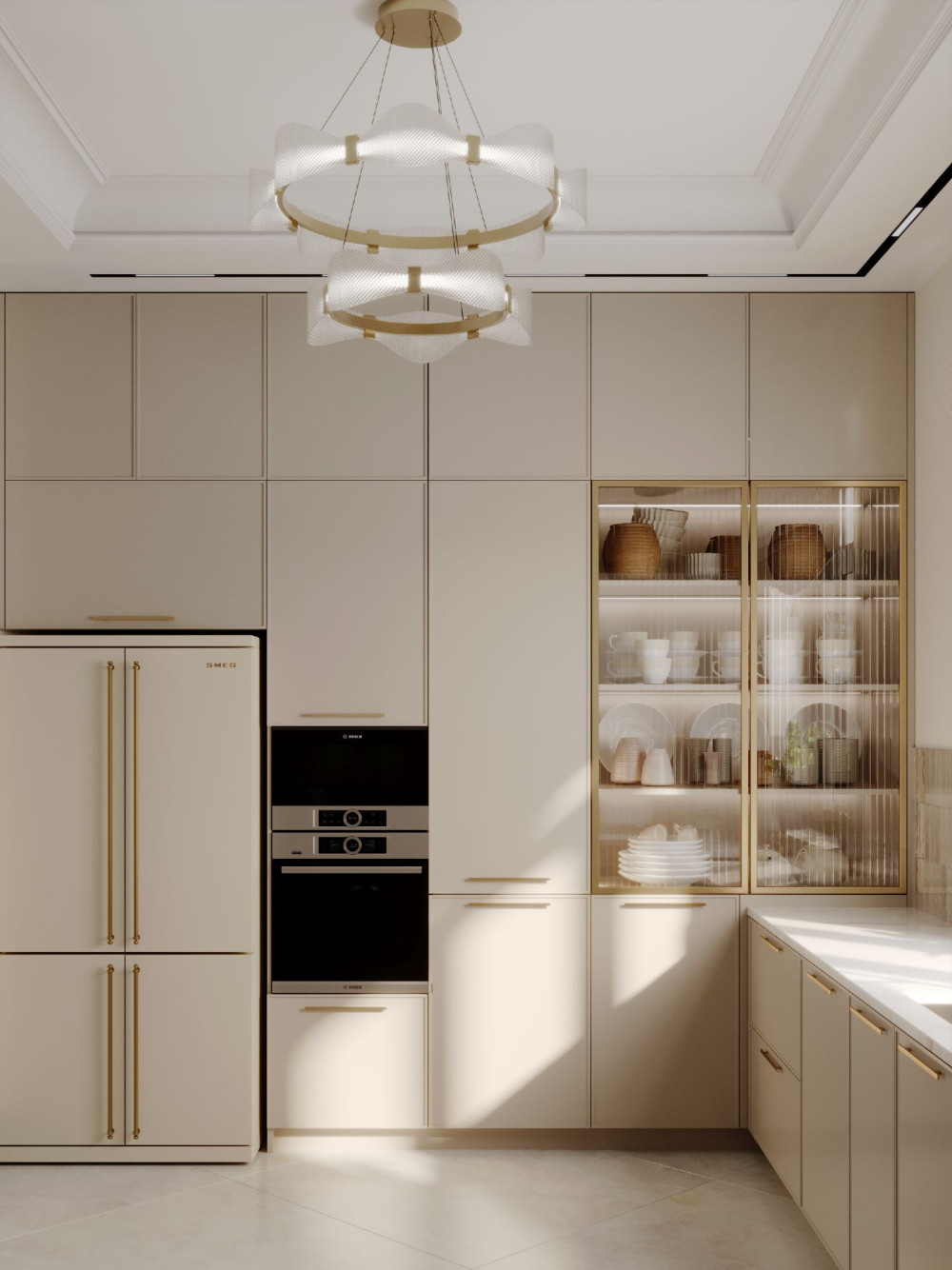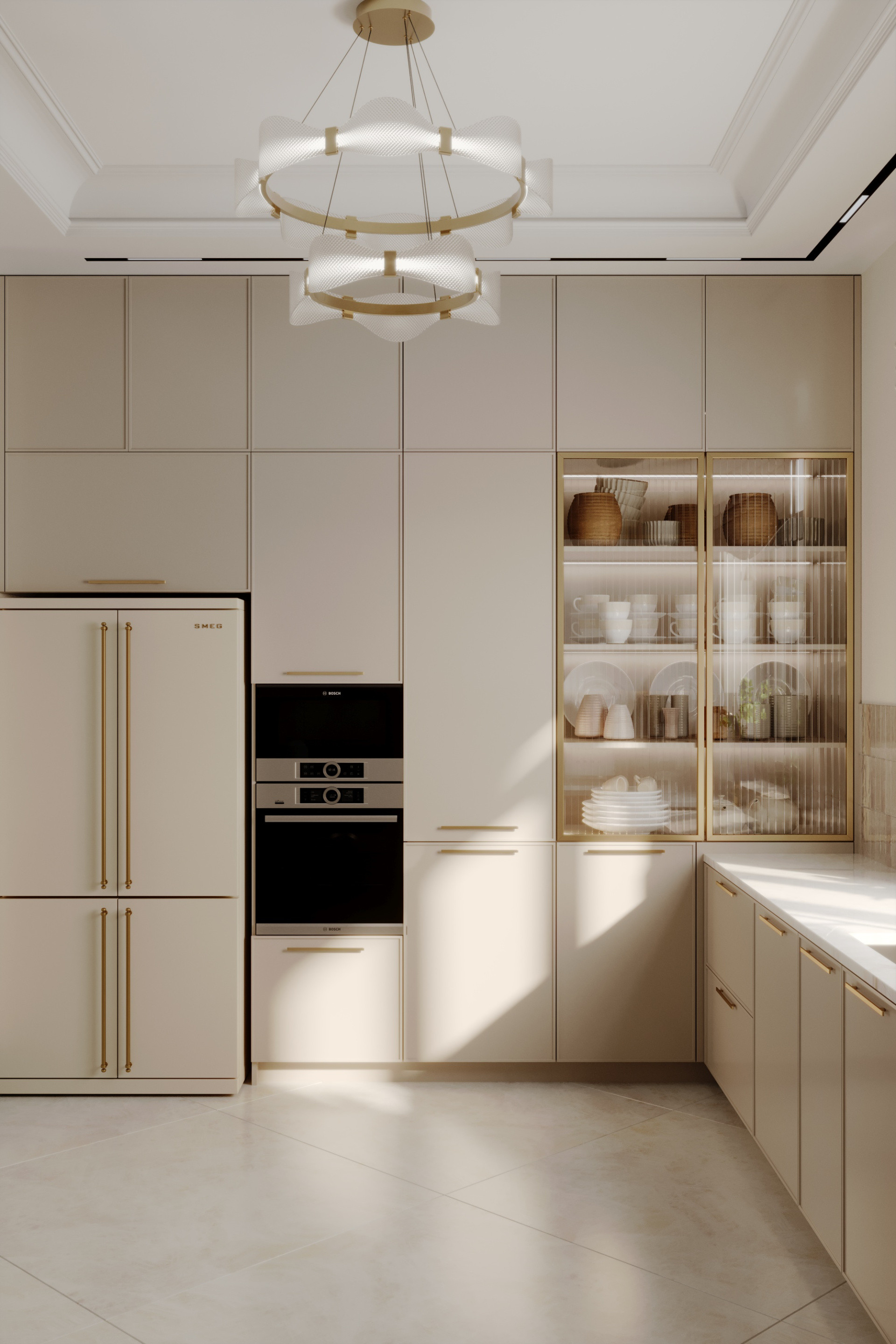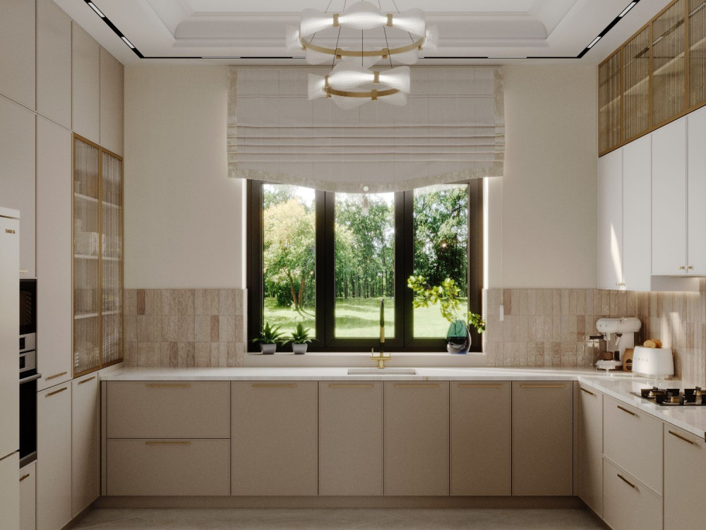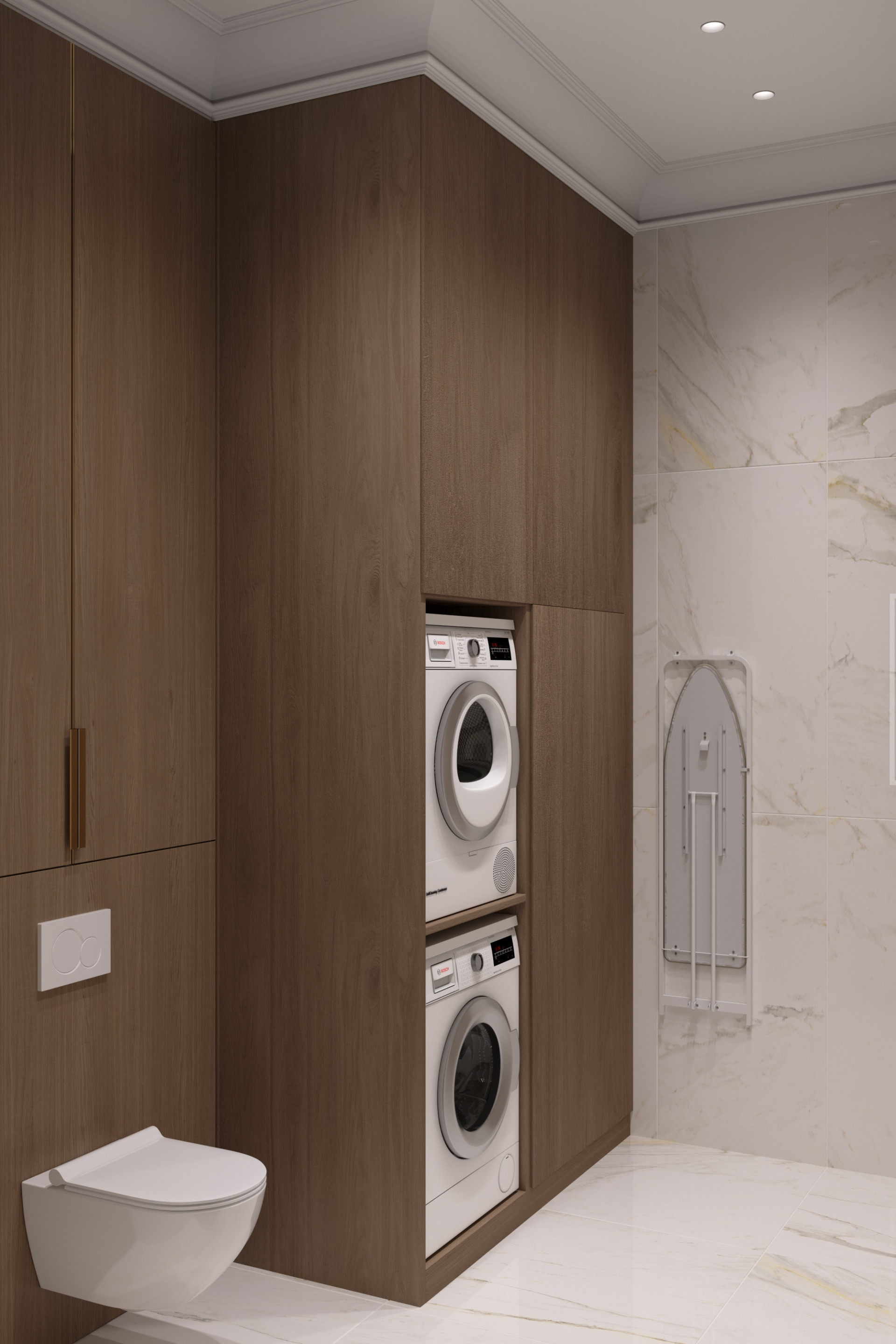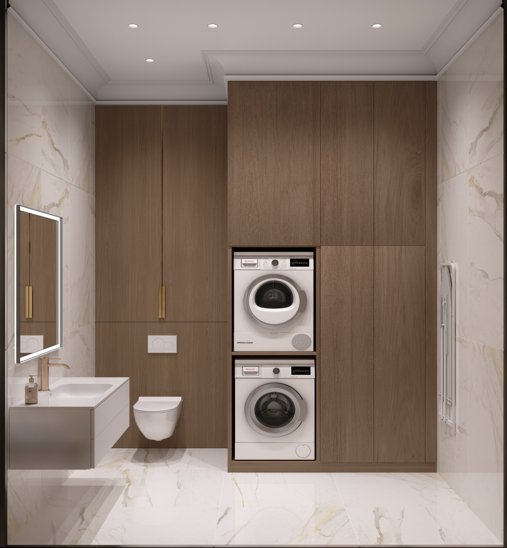 Этот проект мы разработали для нашего постоянного Заказчика. В пожеланиях было создать достаточно минималистичный интерьер для молодой девушки - дочери Заказчика. В ходе проектирования мы меняли общую цветовую гамму интерьера, стилистику и орнамент обоев, подбирая оптимально подходящий вариант, т.к. у хозяйки дома изначально не было четкого понимания в каких тонах хотелось бы видеть свой интерьер. Обычно такое понимание приходит во время совместного выезда на предварительный подбор материалов, который мы осуществляем еще до начала работы над Дизайн-проектом. Но в данном случае провести такой выезд у нас не было возможности и всё подбиралось уже в процессе проектирования. В ходе обсуждений была согласована светлая нейтральная цветовая гамма с добавлением кремово-кофейного оттенка в текстителе и обоях. Геометрический орнамент сделал интерьер более молодежным и современным, а молдинги, добавленные к его плавным линиям, придали интерьеру классики.