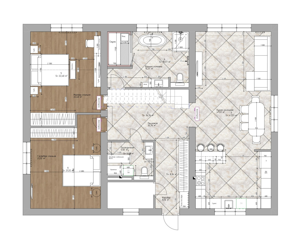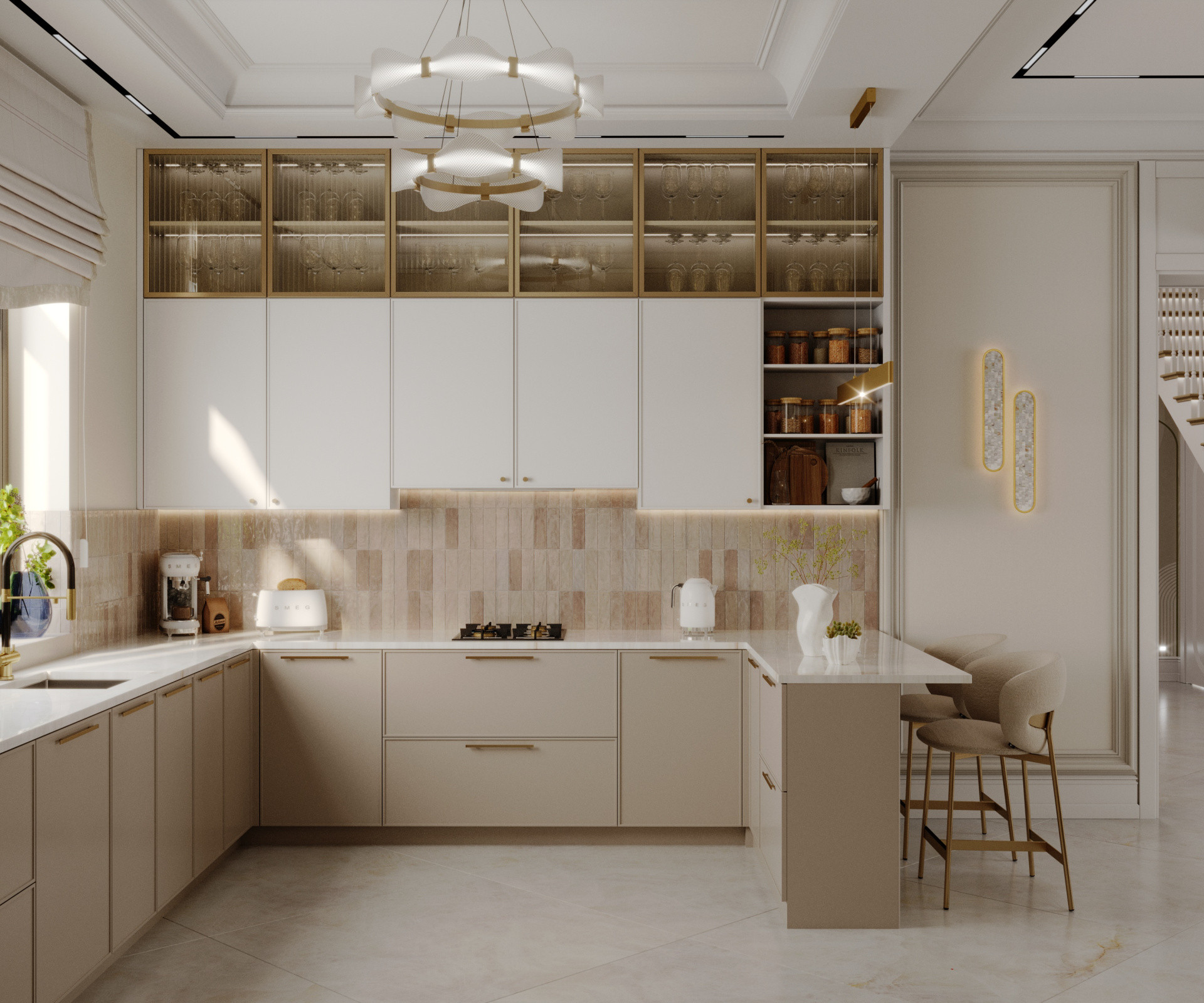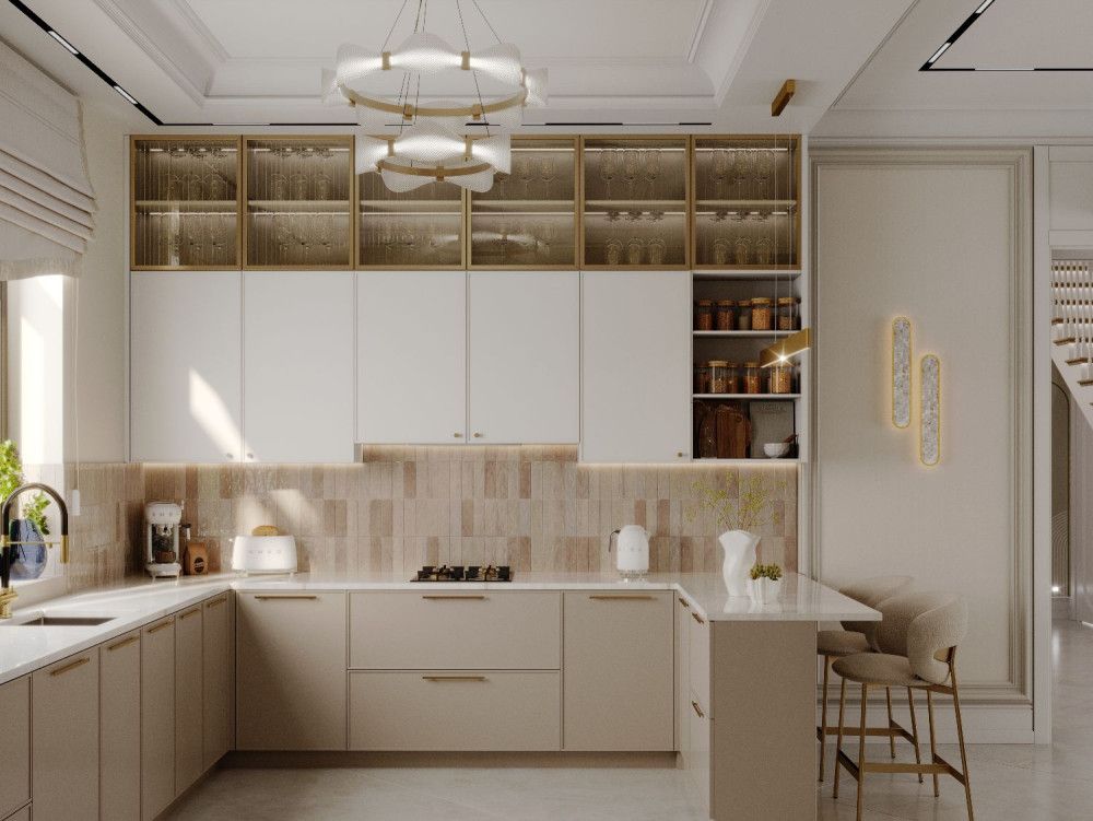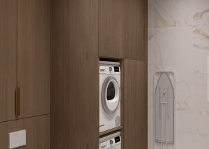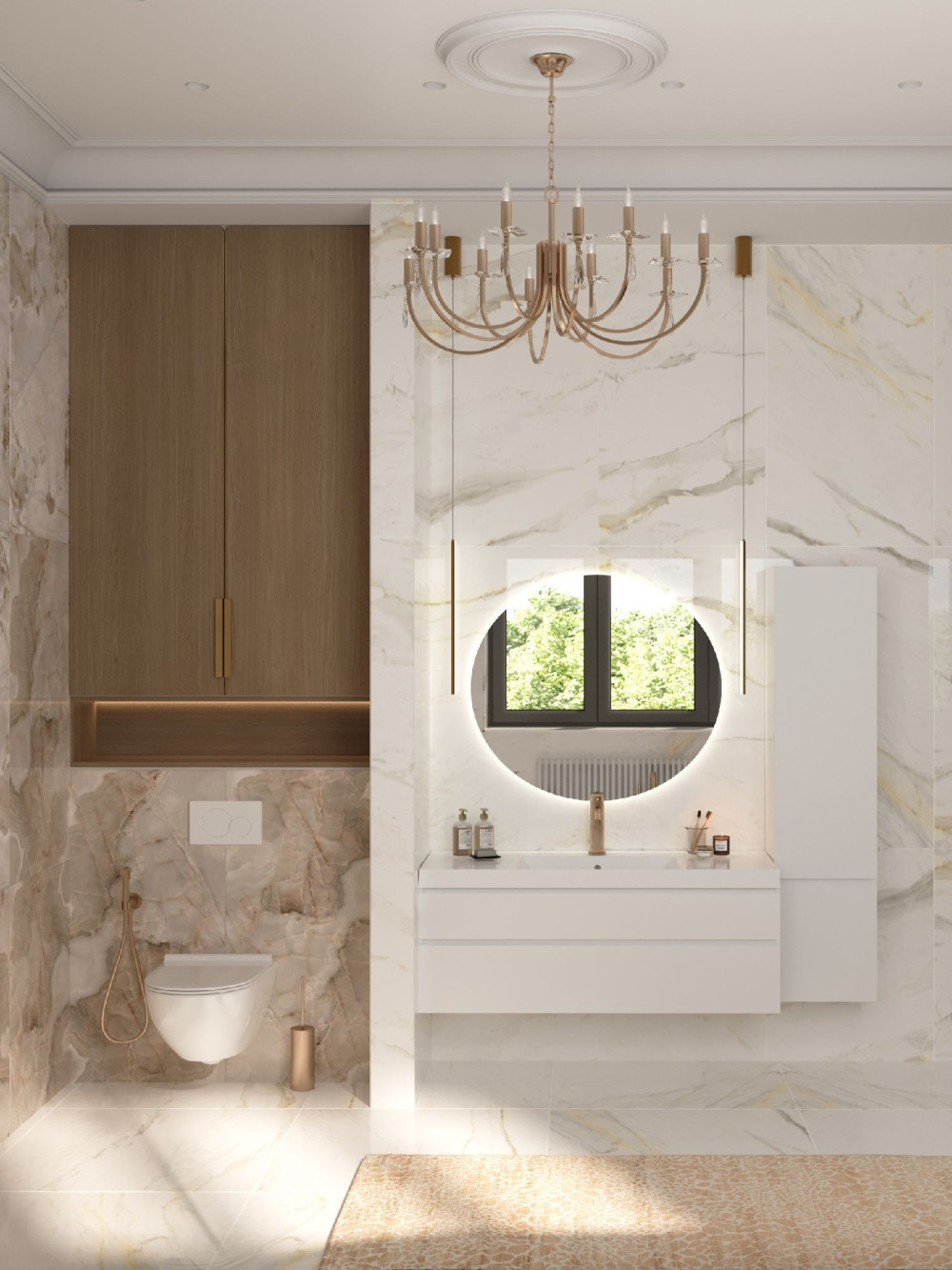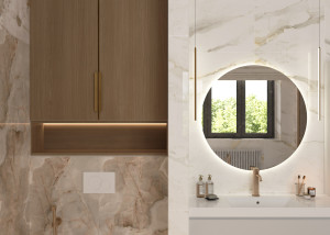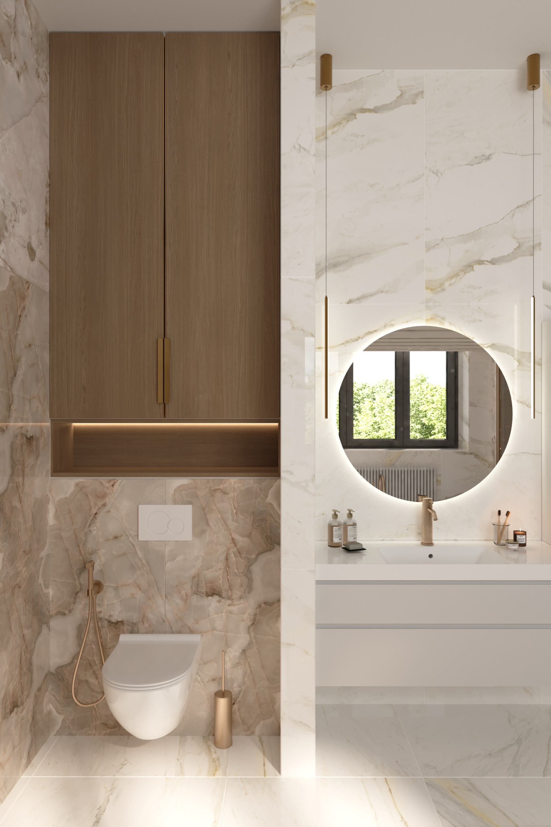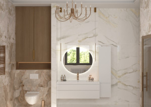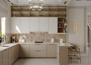 Этот проект мы разработали для нашего постоянного Заказчика. В пожеланиях было создать достаточно минималистичный интерьер для молодой девушки - дочери Заказчика. В ходе проектирования мы меняли общую цветовую гамму интерьера, стилистику и орнамент обоев, подбирая оптимально подходящий вариант, т.к. у хозяйки дома изначально не было четкого понимания в каких тонах хотелось бы видеть свой интерьер. Обычно такое понимание приходит во время совместного выезда на предварительный подбор материалов, который мы осуществляем еще до начала работы над Дизайн-проектом. Но в данном случае провести такой выезд у нас не было возможности и всё подбиралось уже в процессе проектирования. В ходе обсуждений была согласована светлая нейтральная цветовая гамма с добавлением кремово-кофейного оттенка в текстителе и обоях. Геометрический орнамент сделал интерьер более молодежным и современным, а молдинги, добавленные к его плавным линиям, придали интерьеру классики.